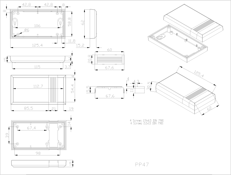 The enclosure benefits from a recessed area suitable for membrane, label or keypad measuring and it is fixed together using three fixing points. Screws are included.