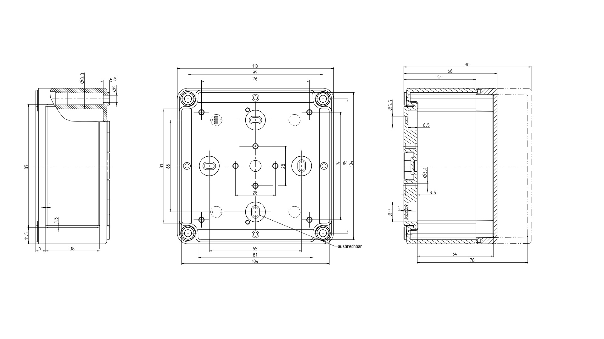 IP66 Polycarbonate Junction box without cable gland knockouts. colour grey RAL 6018, top cover is opaque grey
