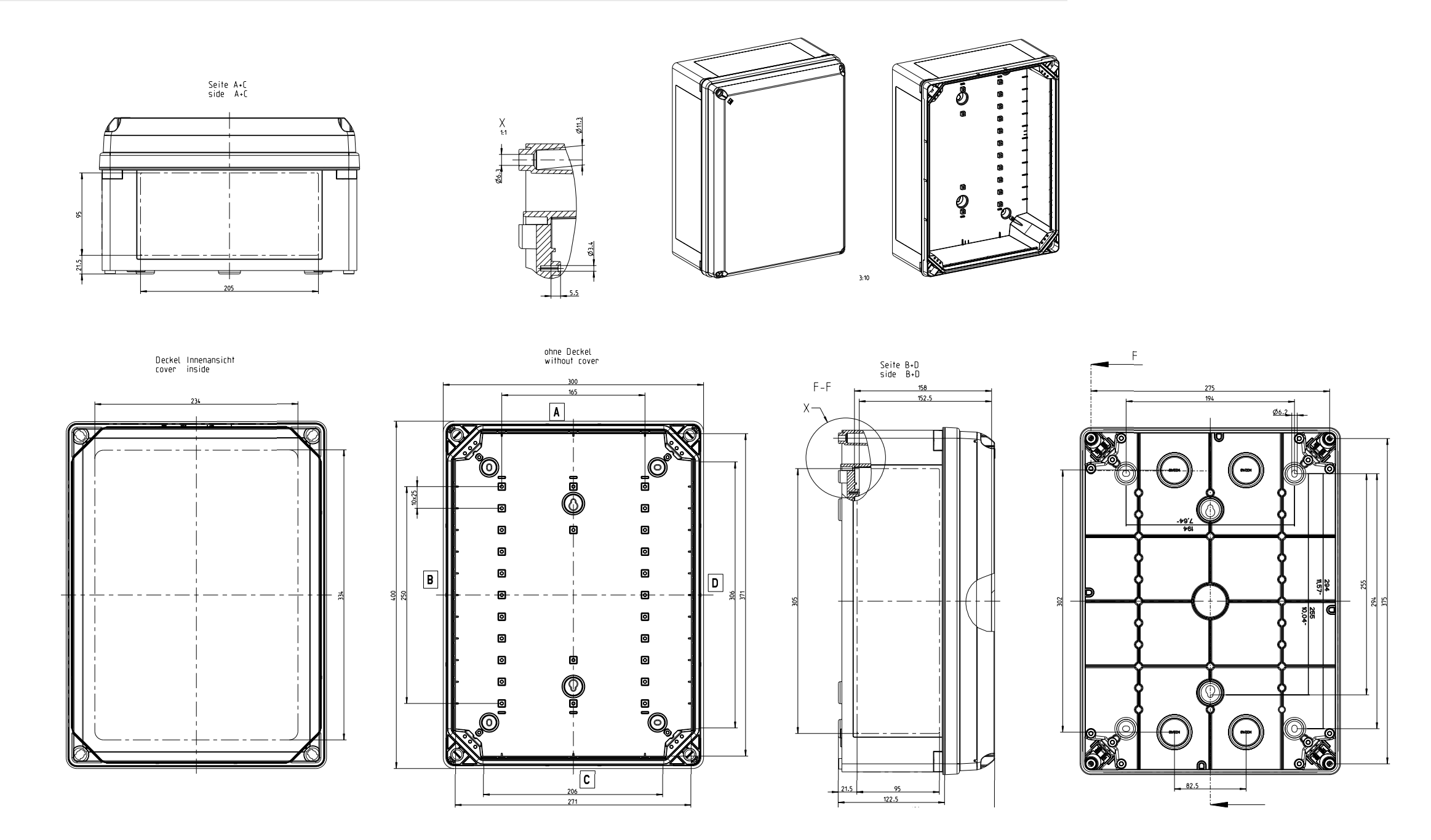 The Geos range of junction boxes are made in high quality materials and the innovative design make this series a universal and long lasting solution for indoor and outdoor applications. The UV and weather resistance of the high quality polycarbonate and the innovative “drain protect” seal system aid protection against most environmental influences. The system serves to divert collected moisture from the environment via a drainage channel to the rear of the enclosure, away from the access point. An overlapping cover and an elastomer seal ensure diverted moisture cannot compromise the integrity of the enclosure, making the GEOS IP66/IP67 rated and perfectly suited for outdoor or indoor usage.