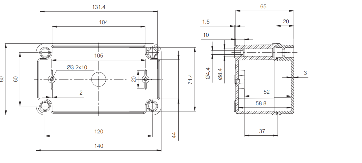 Internally there are mounting points in the base of the enclosure which are suited for PCB, Din rail and mounting plates.