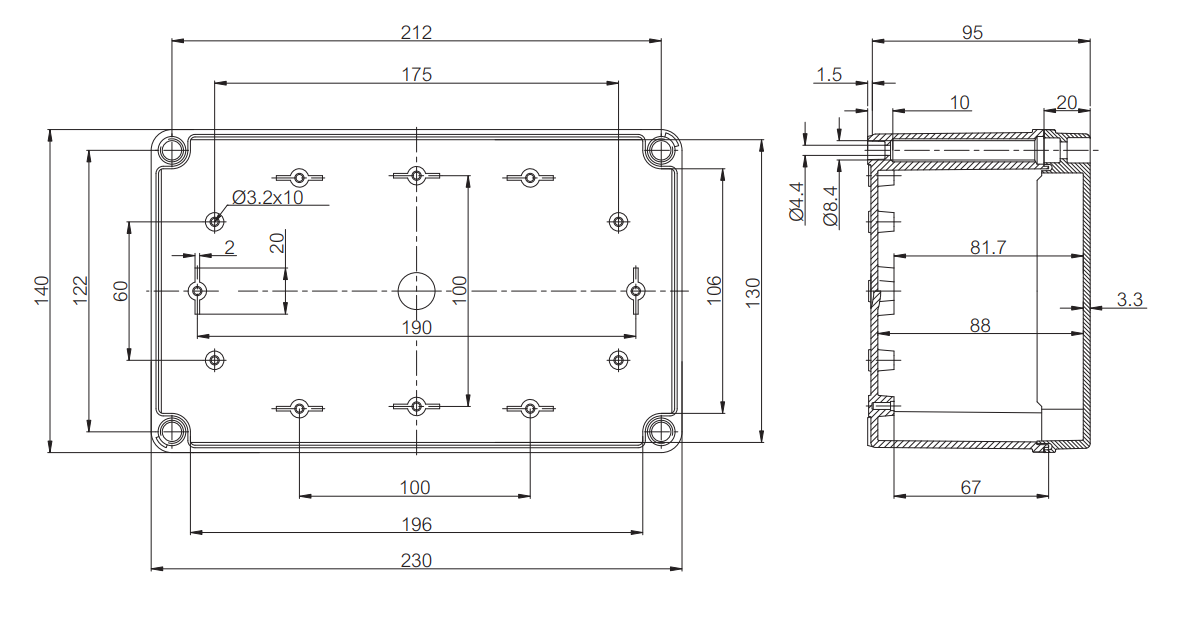 Desk top controller box, colour grey RAL 7035, base height 50 mm, material abs, IP67 rated, electrical control box, grey cover. Clear top version available replace the G for T ie ABS B 65G = ABS B 65T. Case in a polycarbonate version replace the ABS with PC so ABS B 65G becomes PC B 65G.