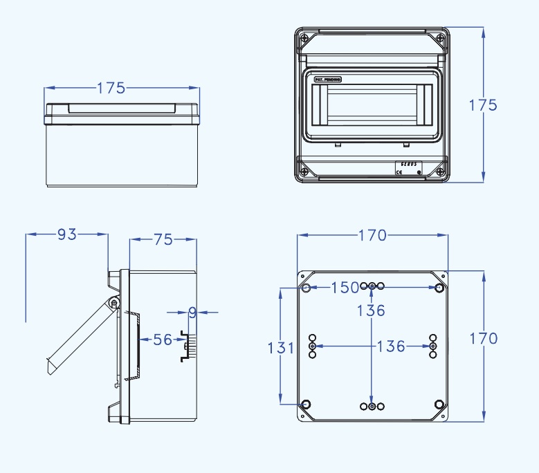 Grey ABS IP65 consumer unit enclosure with one hinged inspection window. 6-8 modules.
