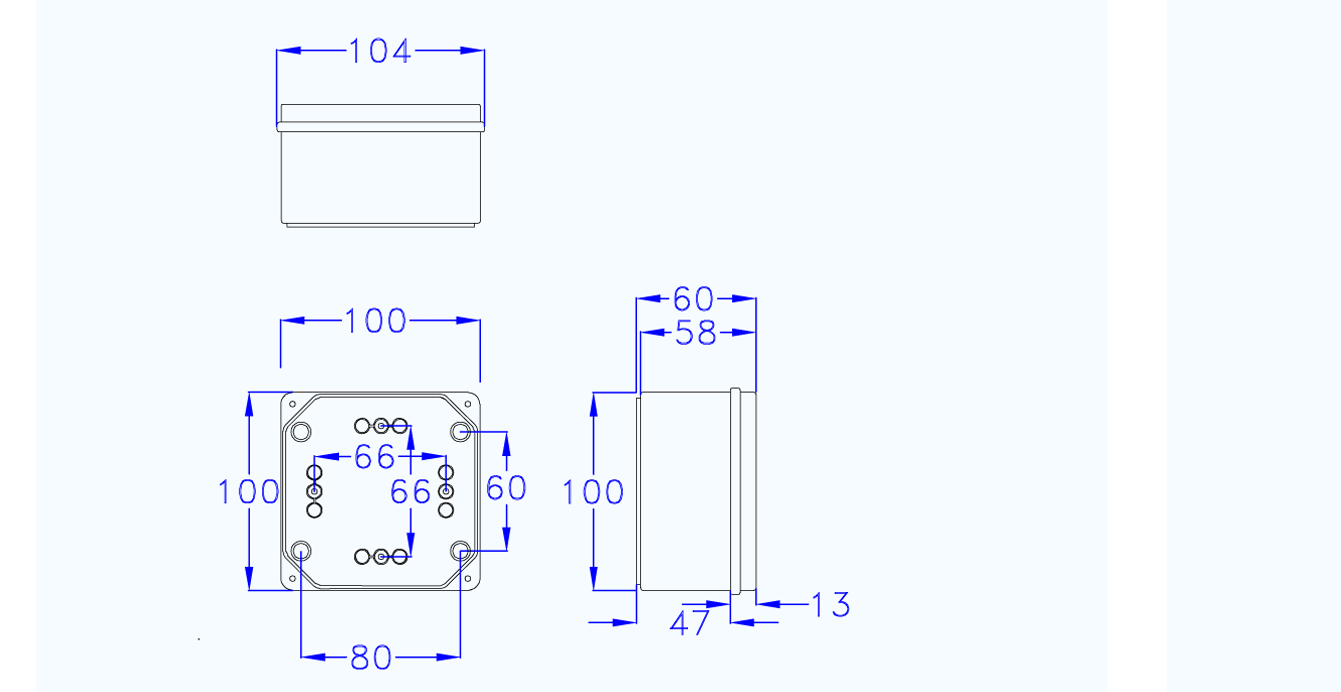 Internally there are mounting points for securing PCB or din rails and knockout points in the base for easy mounting.