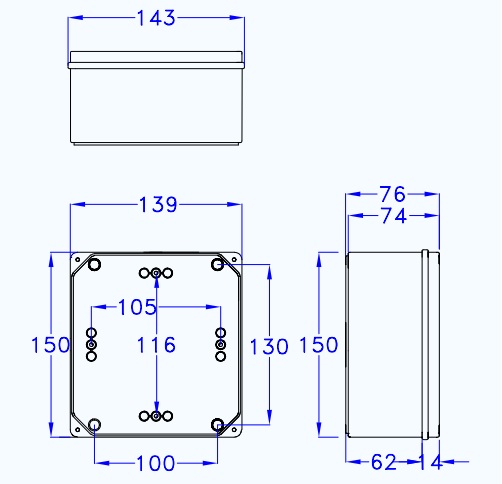 Internally there are mounting points for securing PCB or din rails and knockout points in the base for easy mounting.