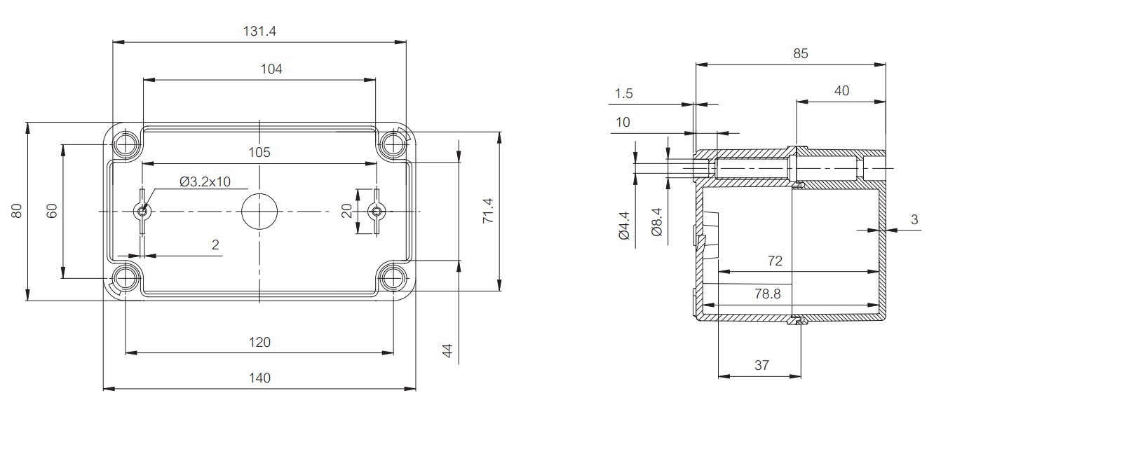 Desk top controller box, colour grey RAL 7035, base height 50 mm, material polycarbonate, IP67 rated, electrical control box, transparent/clear cover. Grey top version available order code PC C 85G. For more cost effective ABS versions replace the PC with ABS so PC C 85T becomes ABS C 85T