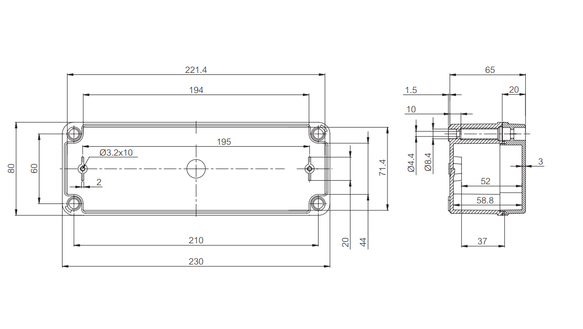 Desk top controller box, colour grey RAL 7035, base height 50 mm, material polycarbonate, IP67 rated, electrical control box, grey cover. Clear top version available order code PC F 65T. For more cost effective ABS versions replace the PC with ABS so PC B 65T becomes ABS B 65T
