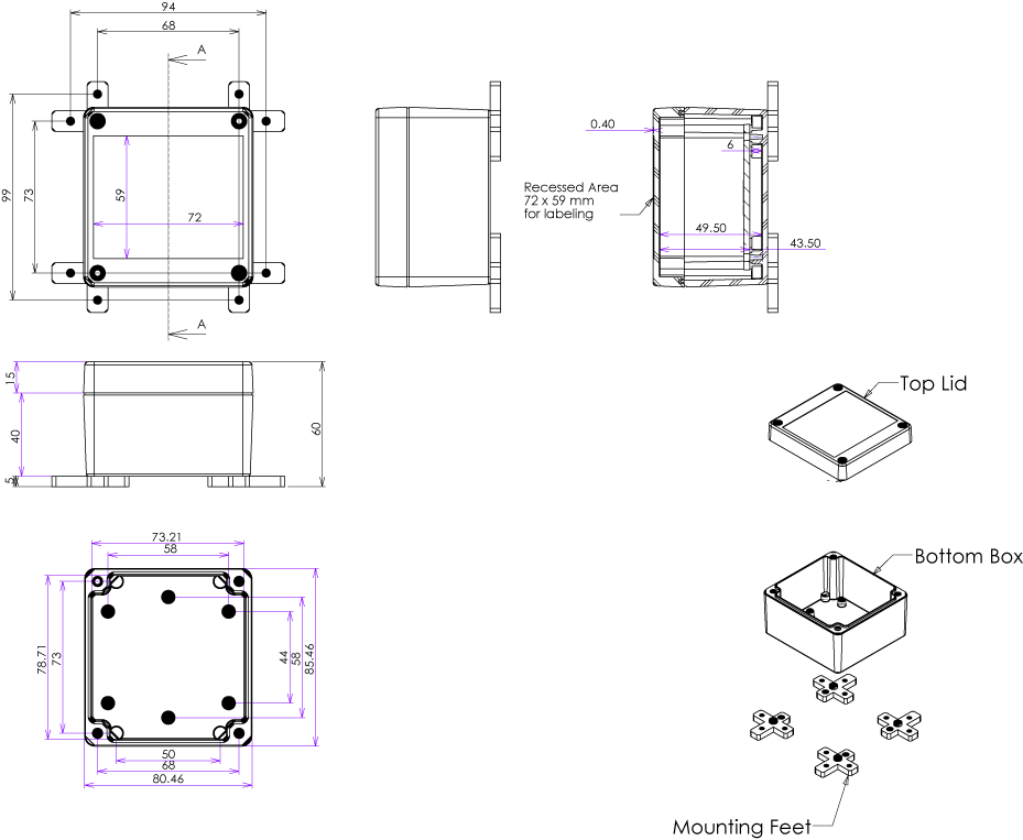The RP1060 is an IP65 waterproof enclosure moulded in polycarbonate flame retardant material.