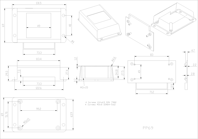 Large flanged case, wall mounting, desk mounting, smooth finish, recessed top 49 x 49 x 1mm lateral opening , black, material ABS, screw together, internal PCB stand off’sLOW COST MACHINING.This product can be machined to your specifications at the point of manufacture.Contact us for details.