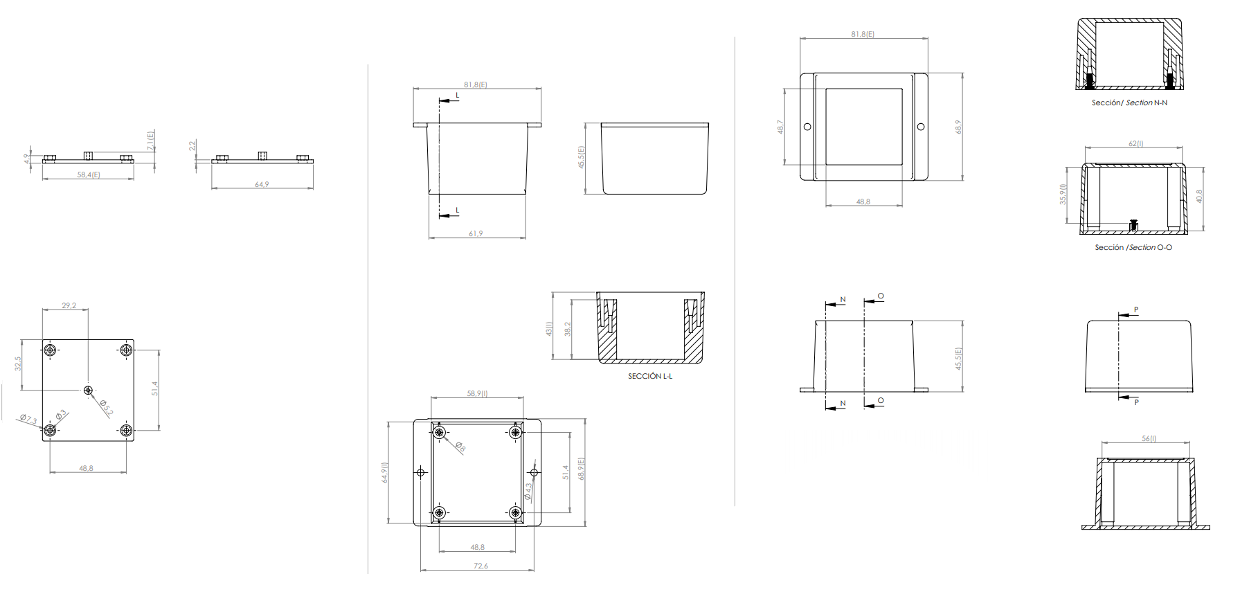 Medium flanged case, wall mounting, desk mounting, recessed top 49 x 49 x 1mm, black, material ABS, screw together, internal PCB stand off’sLOW COST MACHINING.This product can be machined to your specifications at the point of manufacture.Contact us for details.