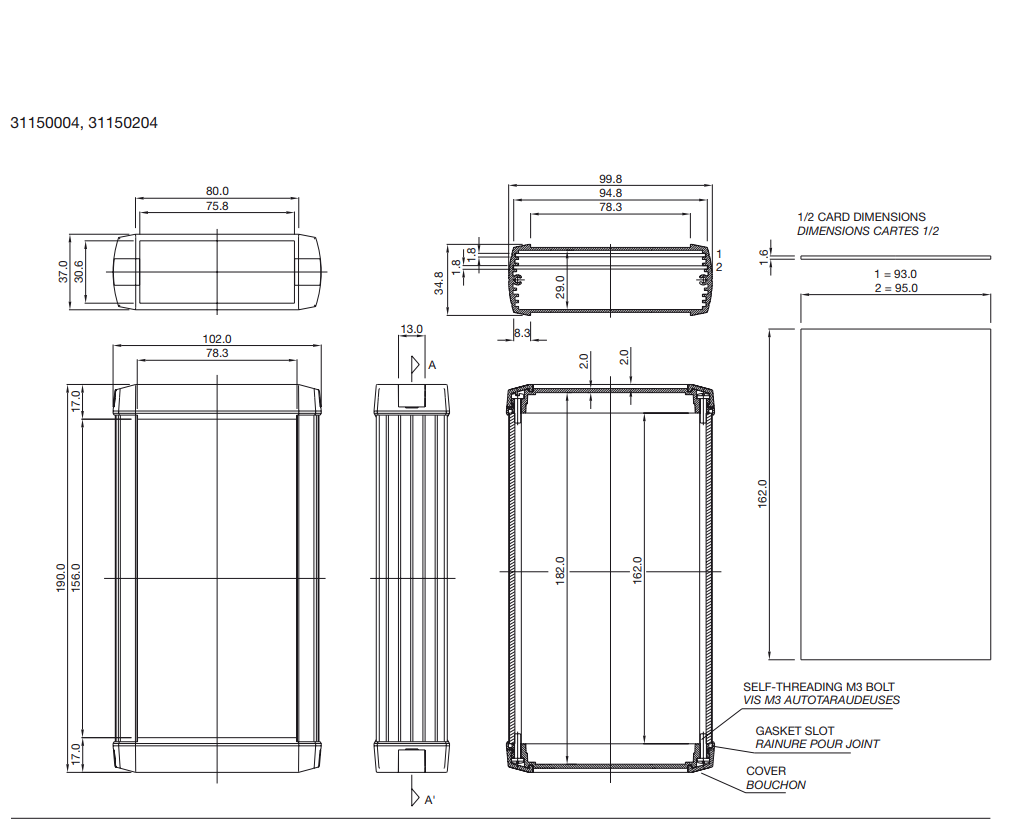 The inside of the enclosure contains mounting rails for simple PCB mounting and the case is assembled by fitting end panels and fixing the case together with the screws and screw covers included.