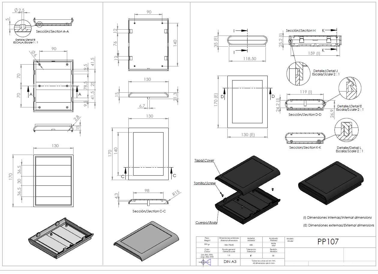 Alternate versions of this enclosure are available – Product Codes: PP70 and PP107