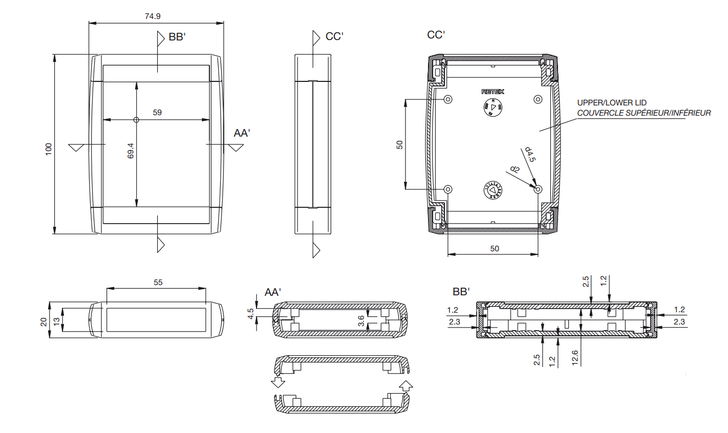 This range is moulded in light grey and dark grey ABS material which is temperature resistant up to 85ºC and the enclosures have a wall thickness of 3mm providing great protection against impact.