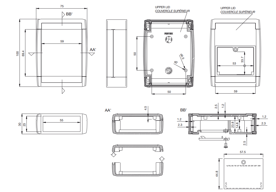This range is moulded in light grey and dark grey ABS material which is temperature resistant up to 85ºC and the enclosures have a wall thickness of 3mm providing great protection against impact.