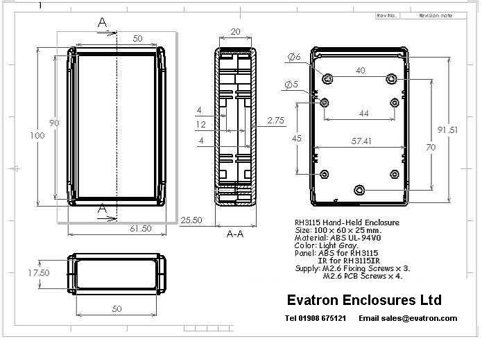 Small hand held ABS flame retardant, 94V-0 light Grey case with internal PCB mounts and PCB slots. Removable front panel in ABS plastic or Infra red. All fixings supplied.