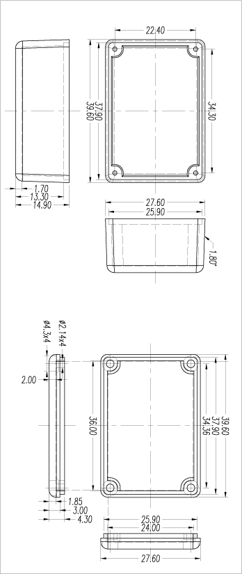 The RX series are a range of small plastic enclosures designed to house and protect electronic equipment. They are moulded in ABS material and fixed together with four self tapping screws which are included. The rigid design is strong against impact and the smooth interior maximises space for housing components.